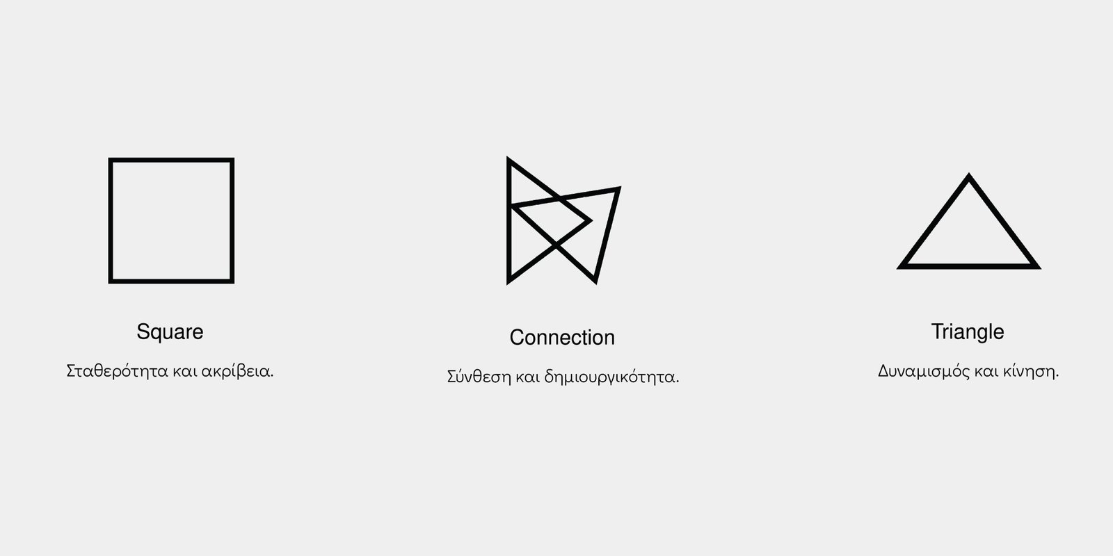 Το λογότυπο είναι μια σύνθεση γεωμετρικών σχημάτων – κυρίως τρίγωνα και τετράγωνο – τα οποία εναρμονίζονται σε ένα αφαιρετικό μοτίβο εμπνευσμένο από αρχιτεκτονικές φόρμες. Η σύνθεση παραπέμπει σε δομικές σχέσεις και κάτοψη, προσδίδοντας ισορροπία και αρχιτεκτονική αναφορά, χωρίς να είναι περιγραφική.